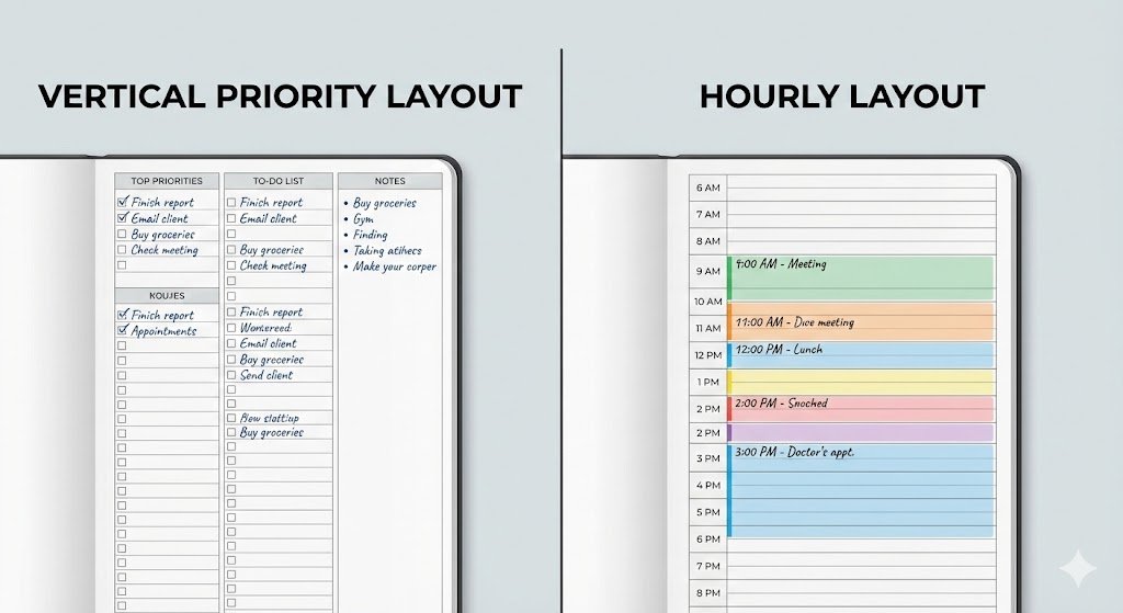 If you write long sentences or like to journal about your day, the Horizontal layout provides wide, lined spaces for every day of the week. It feels more like a traditional diary but with the structure of a planner.